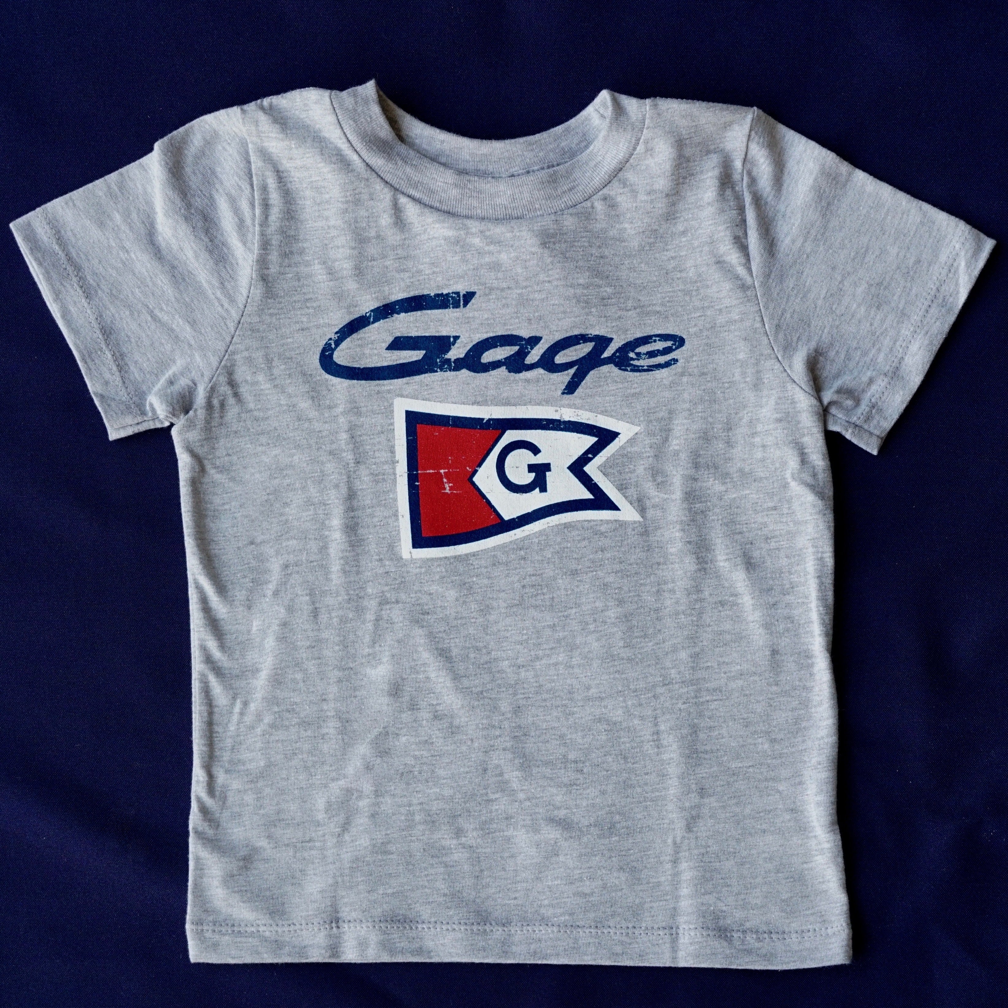 The Toddler Vintage Burgee T‑Shirt brings playful port-side spirit to the littlest lake fans. Made from 100 percent cotton, it features a small distressed Gage burgee centered on the chest. Soft, breathable, and perfectly sized for two- and four-year-olds, it’s ideal for family outings or everyday style.