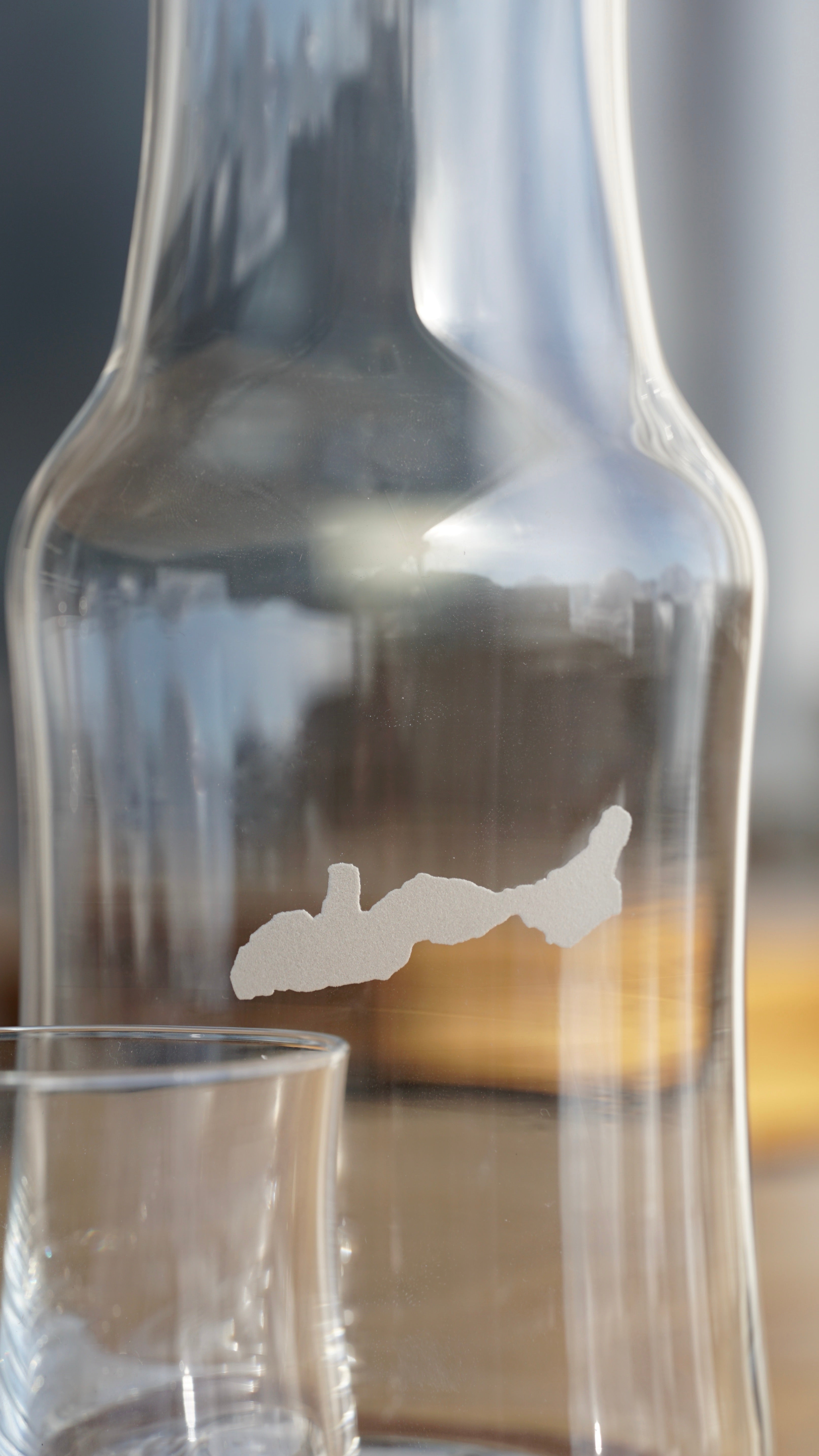 This two piece carafe set is etched with the iconic shape of Lake Geneva.