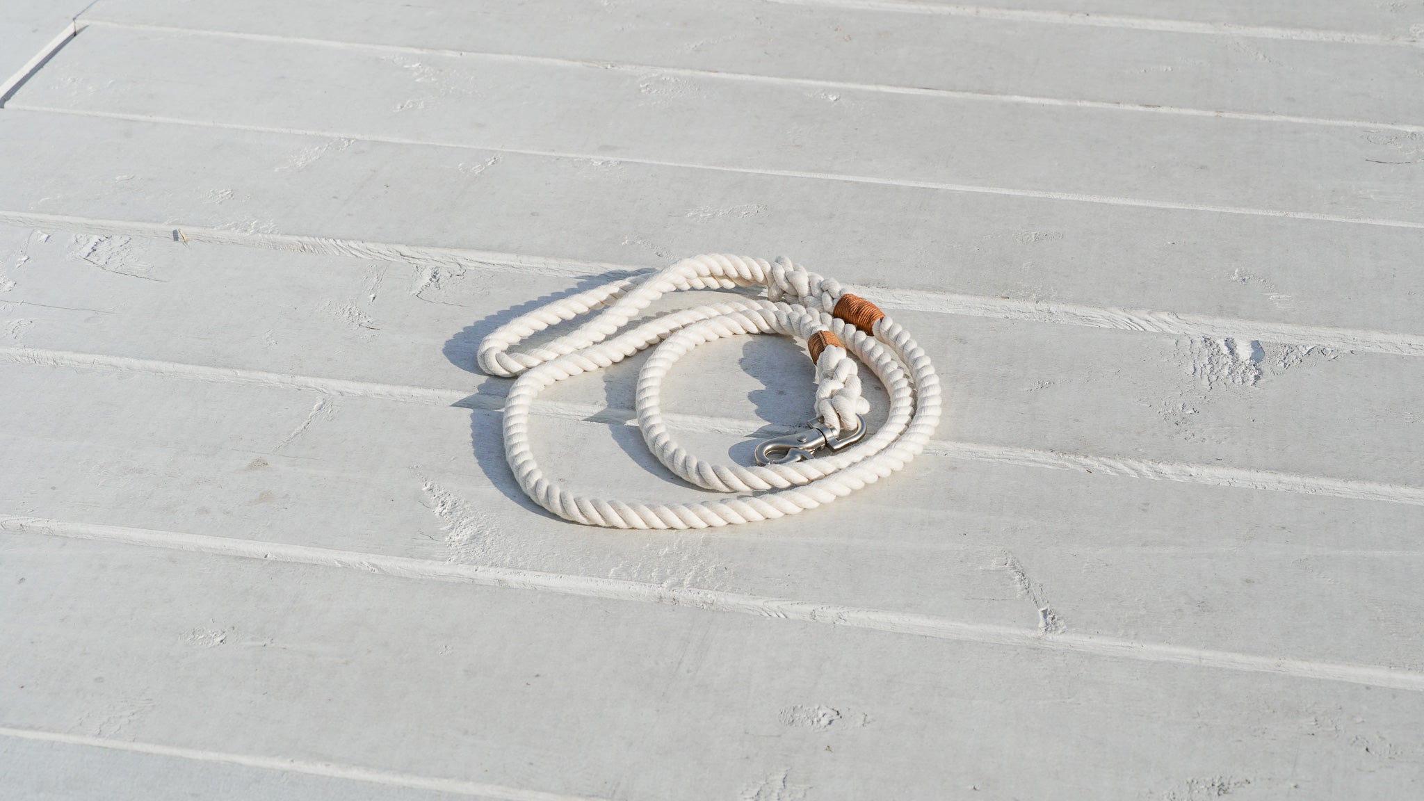 Hit the Lake Path in style - no matter the time of year. This subtle, neutral dog leash is perfect for lake dogs looking to accessorize with a little nautical flare. Our Rope Dog Leash measures roughly 5 feet long and is complete with twine details, along with a clasp to attach to a collar or a harness.