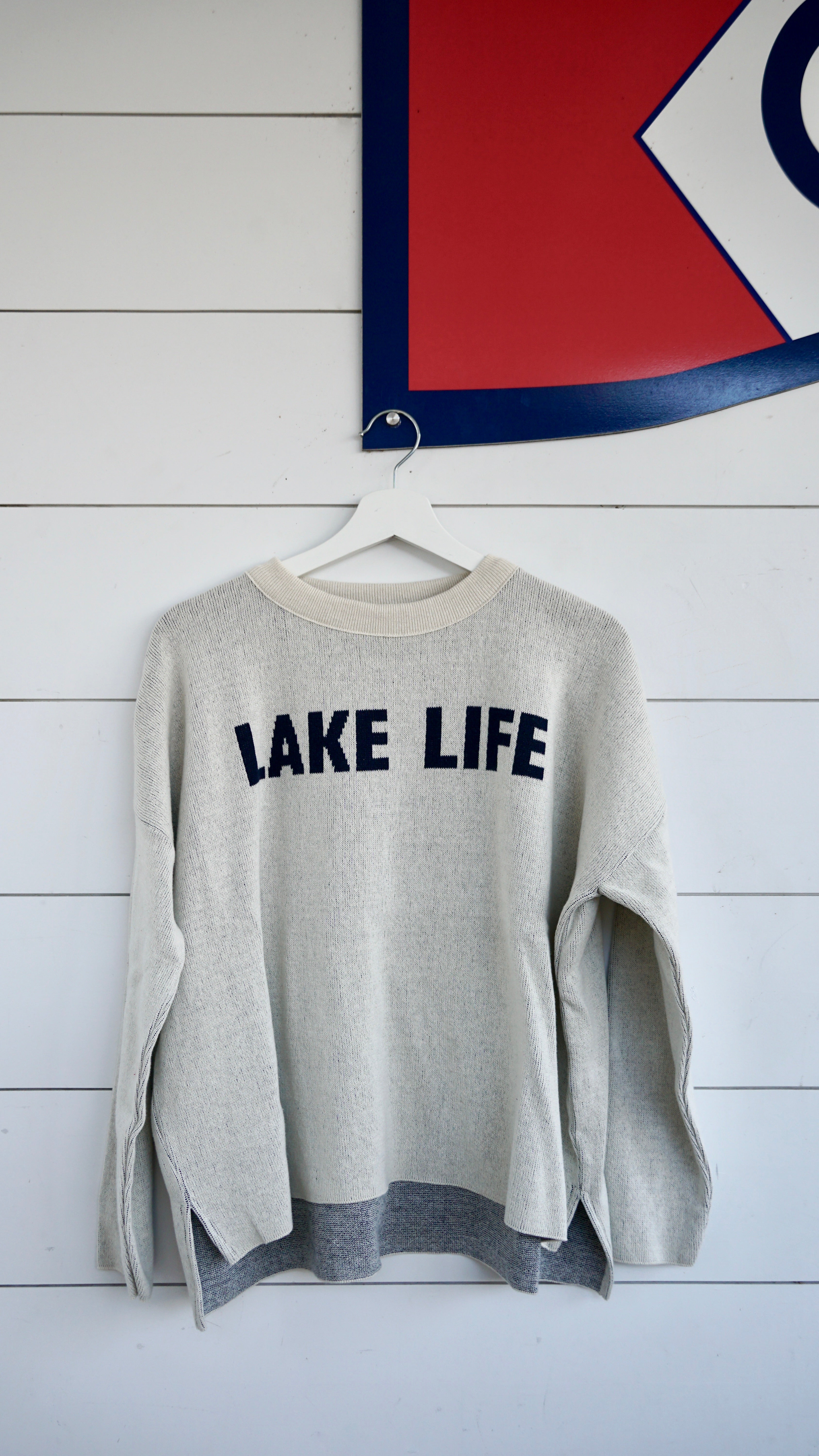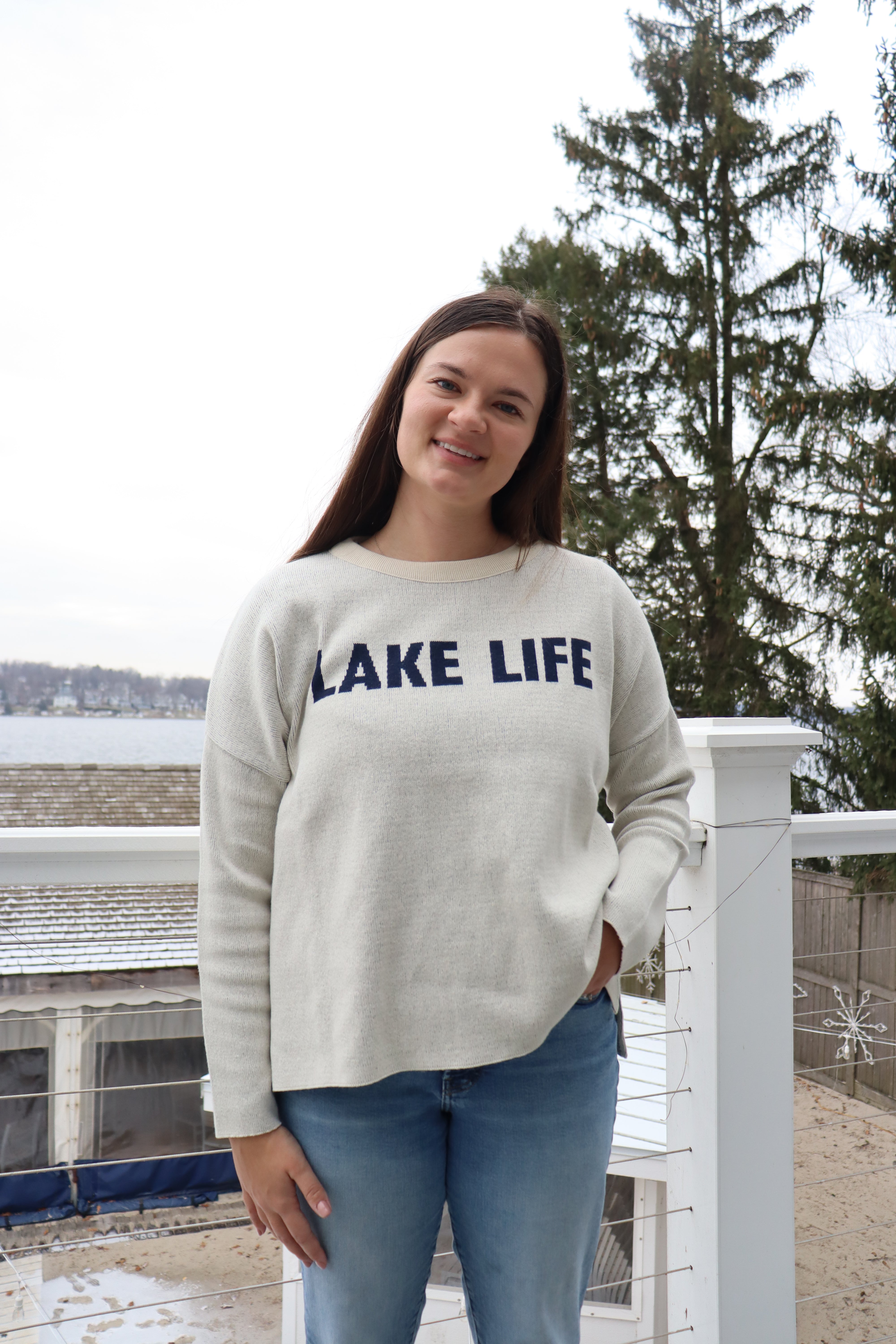 The Lake Life Sweater is a year-round favorite made for lake weekends, boat rides, and relaxed fireside hangs. Crafted in a soft cotton blend and finished with simple navy “Lake Life” lettering, this pullover is a go-to for anyone who lives for the lake.