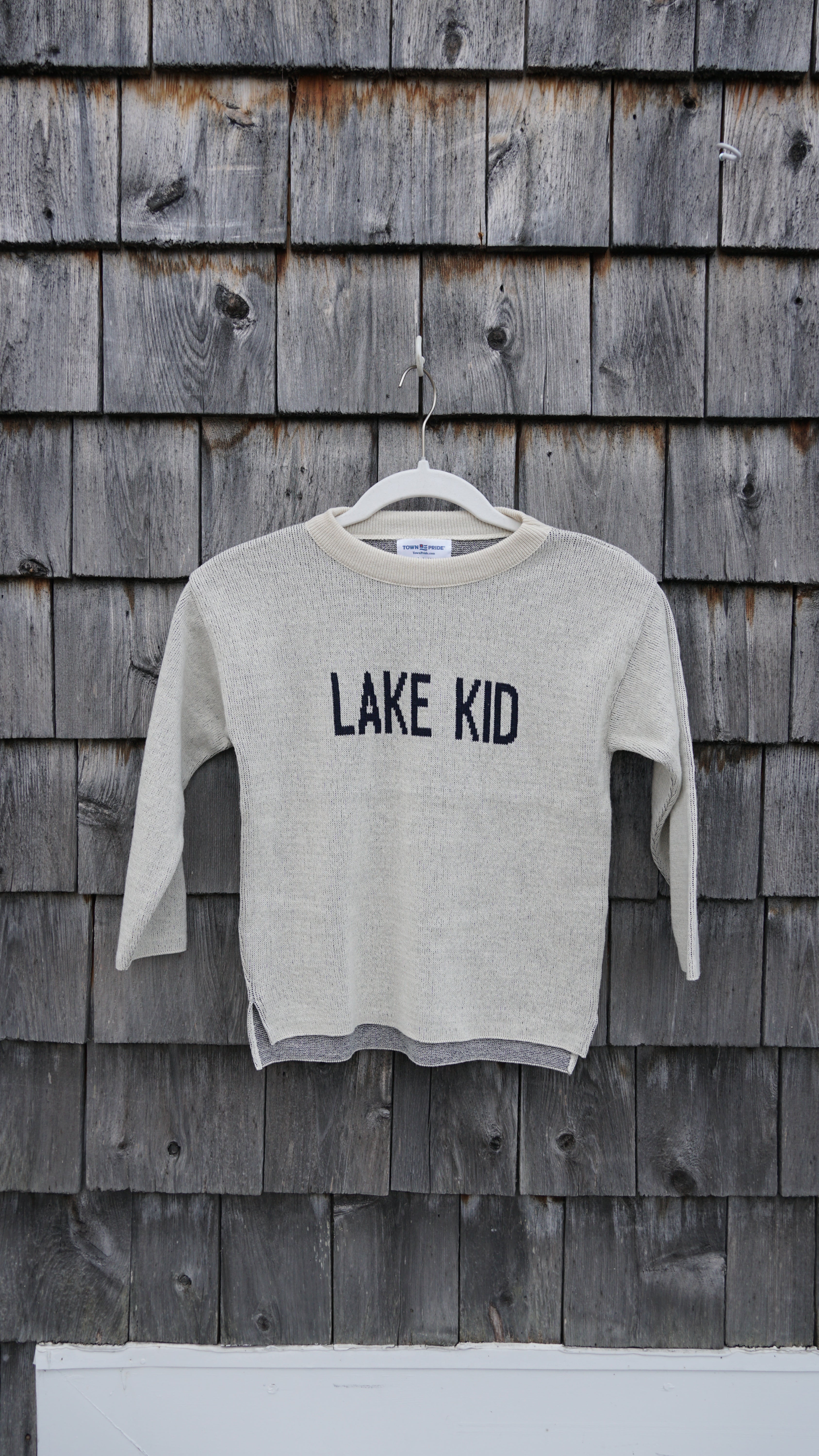 Town Pride cozy classic Lake Kid sweater. Perfect for exploring, and making waves.