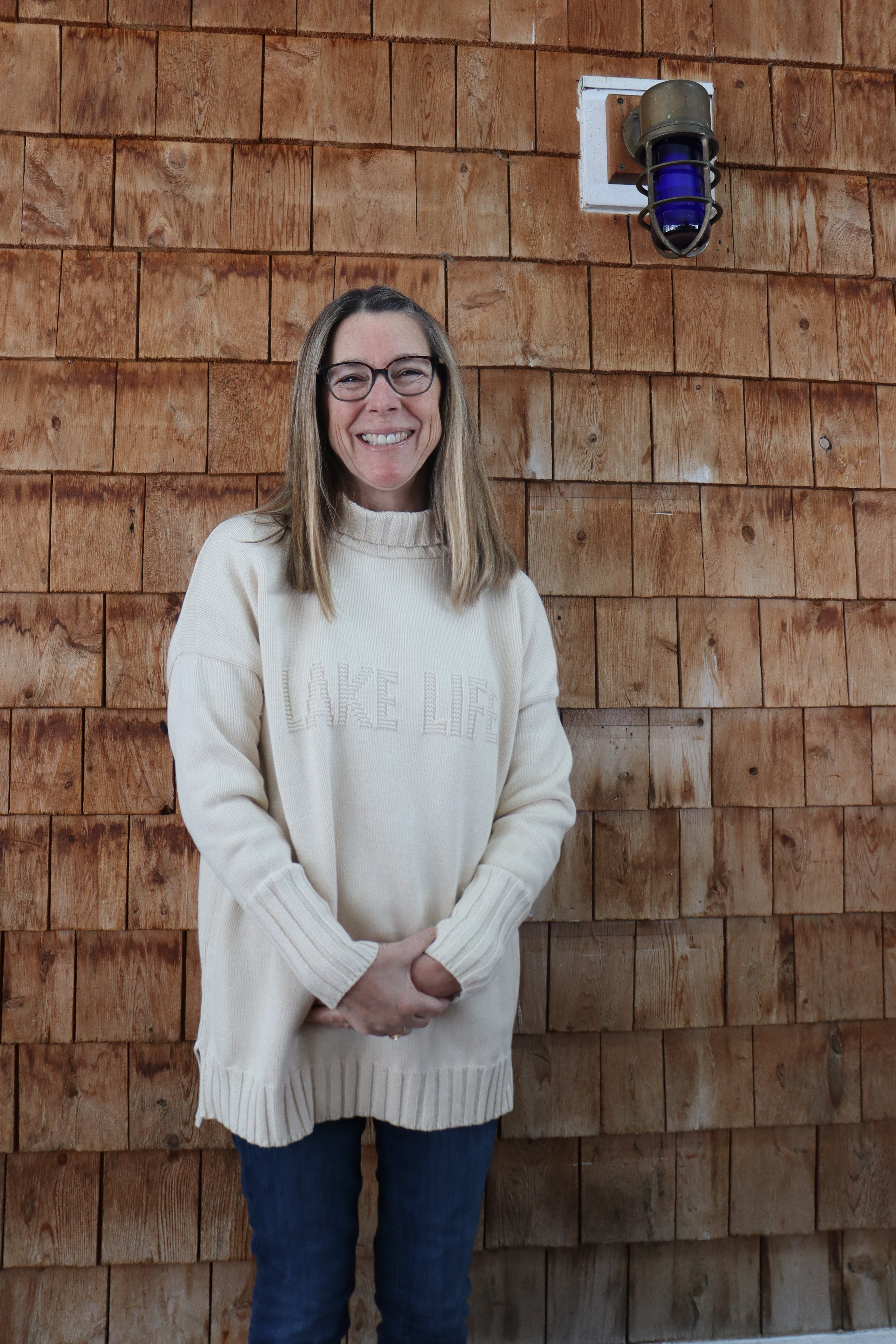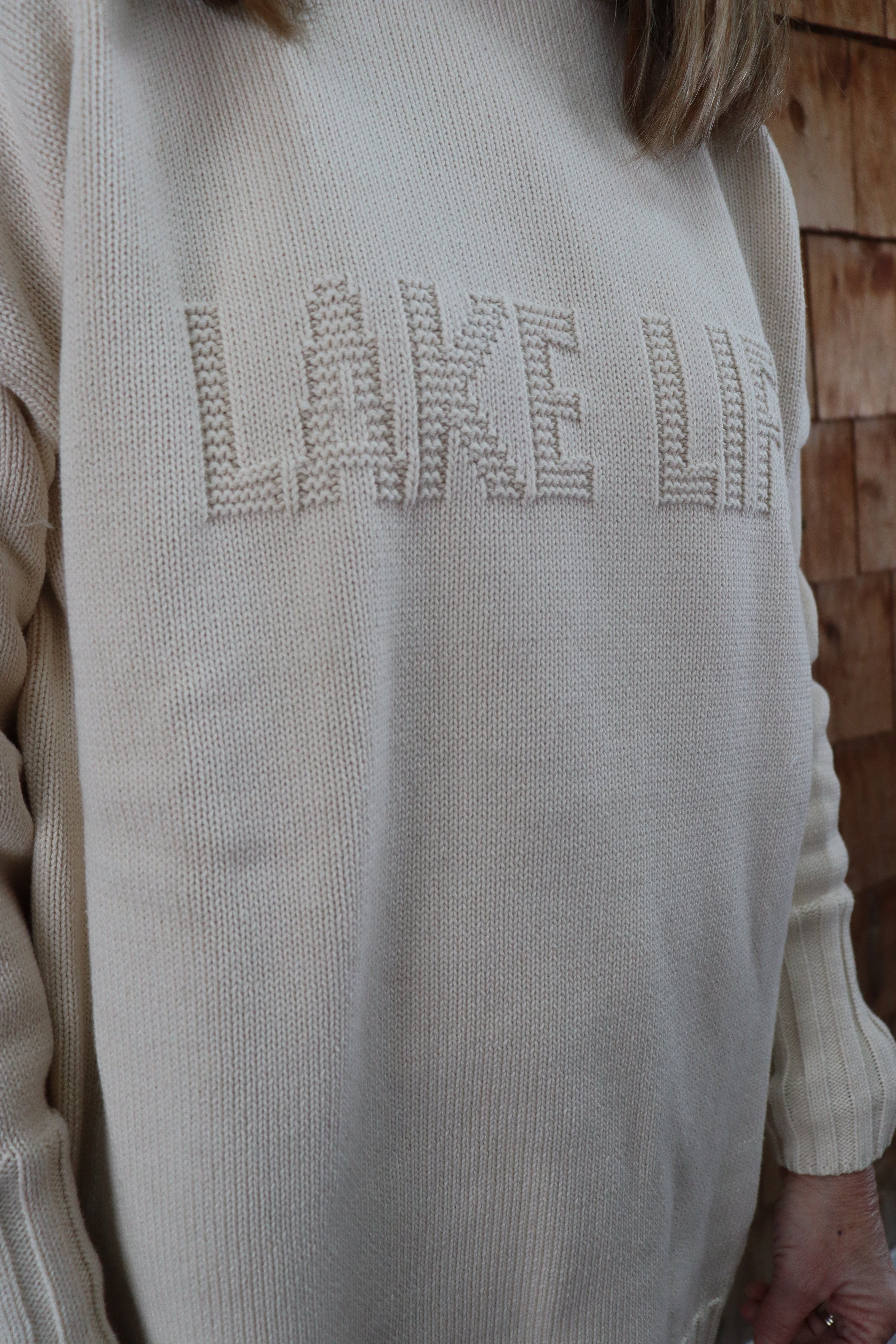 Embossed Lake Life Turtleneck Sweater